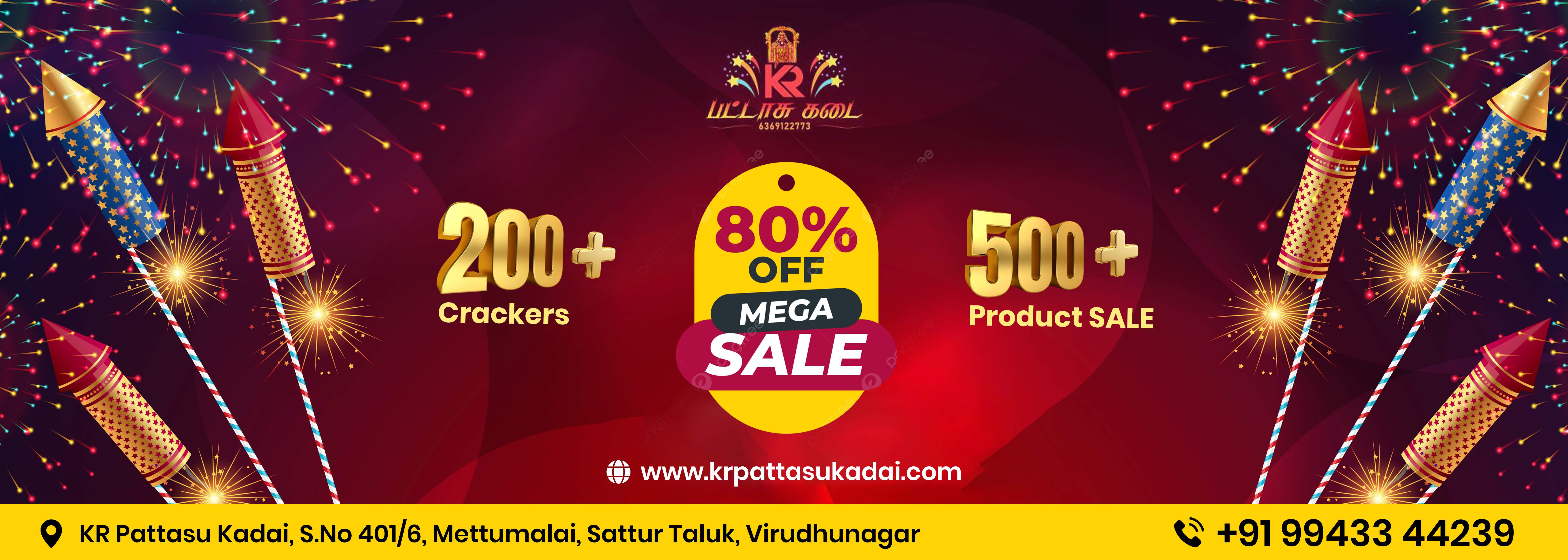 Welcome to KR Pattasu Kadai, your trusted destination for high-quality and vibrant firecrackers. Based in the heart of Sivakasi, we specialize in offering a wide range of safe, colorful, and eco-friendly fireworks to light up your celebrations. With years of experience in the fireworks industry, our goal is to bring joy, excitement, and unforgettable memories to every festive occasion. From traditional crackers to innovative aerial displays, we ensure every product is crafted with precision, safety, and sparkle in mind. At KR Pattasu Kadai, we believe in combining tradition with innovation. Whether it's Diwali, weddings, birthdays, or public events — our fireworks add the perfect spark to every celebration.
